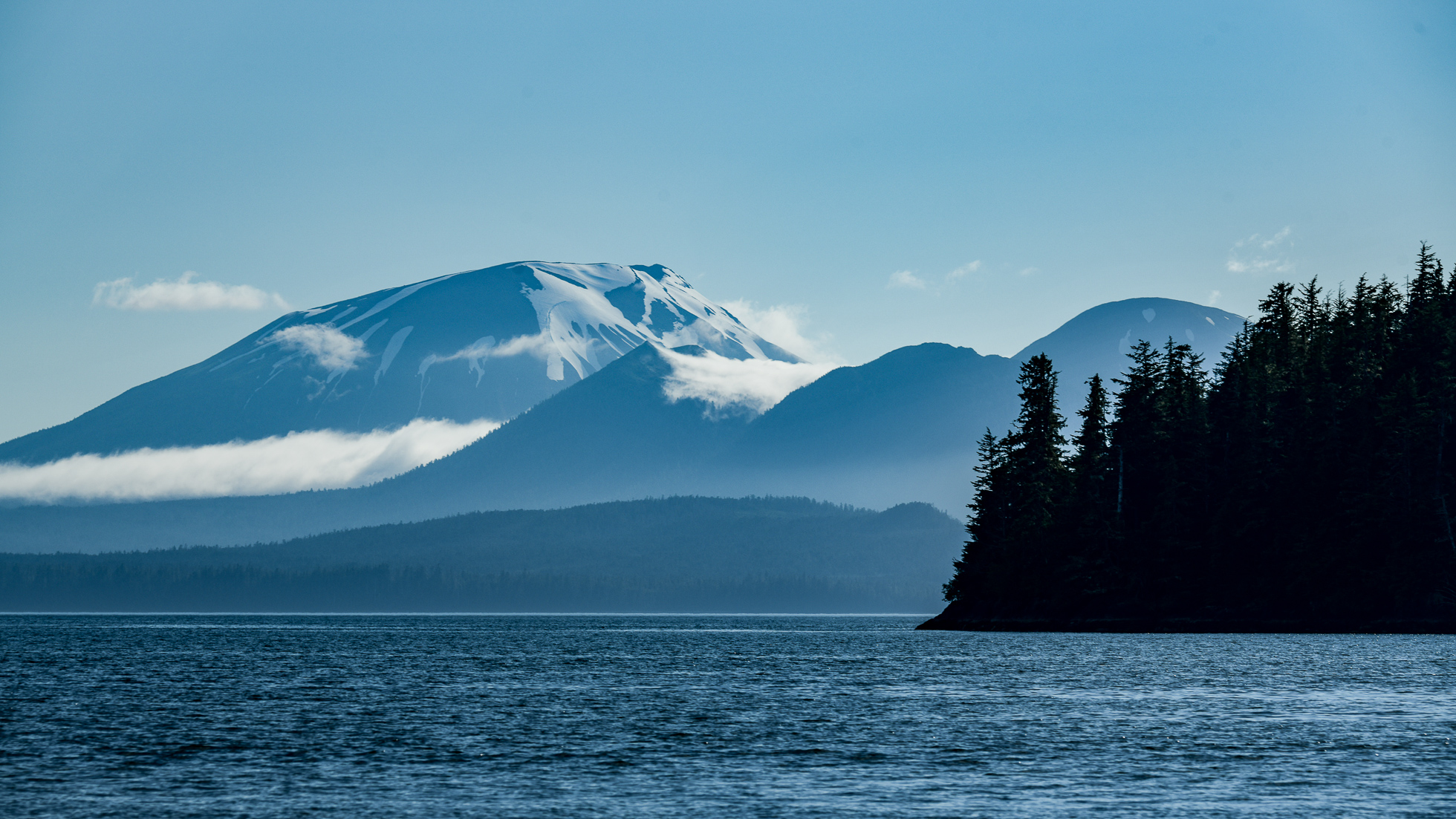 Once an active volcano, Mount Edgecumbe last erupted roughly 800 years ago. Today, its slopes shelter old-growth forest, and its beaches face a stretch of ocean so vast that the next landfall west is Japan.