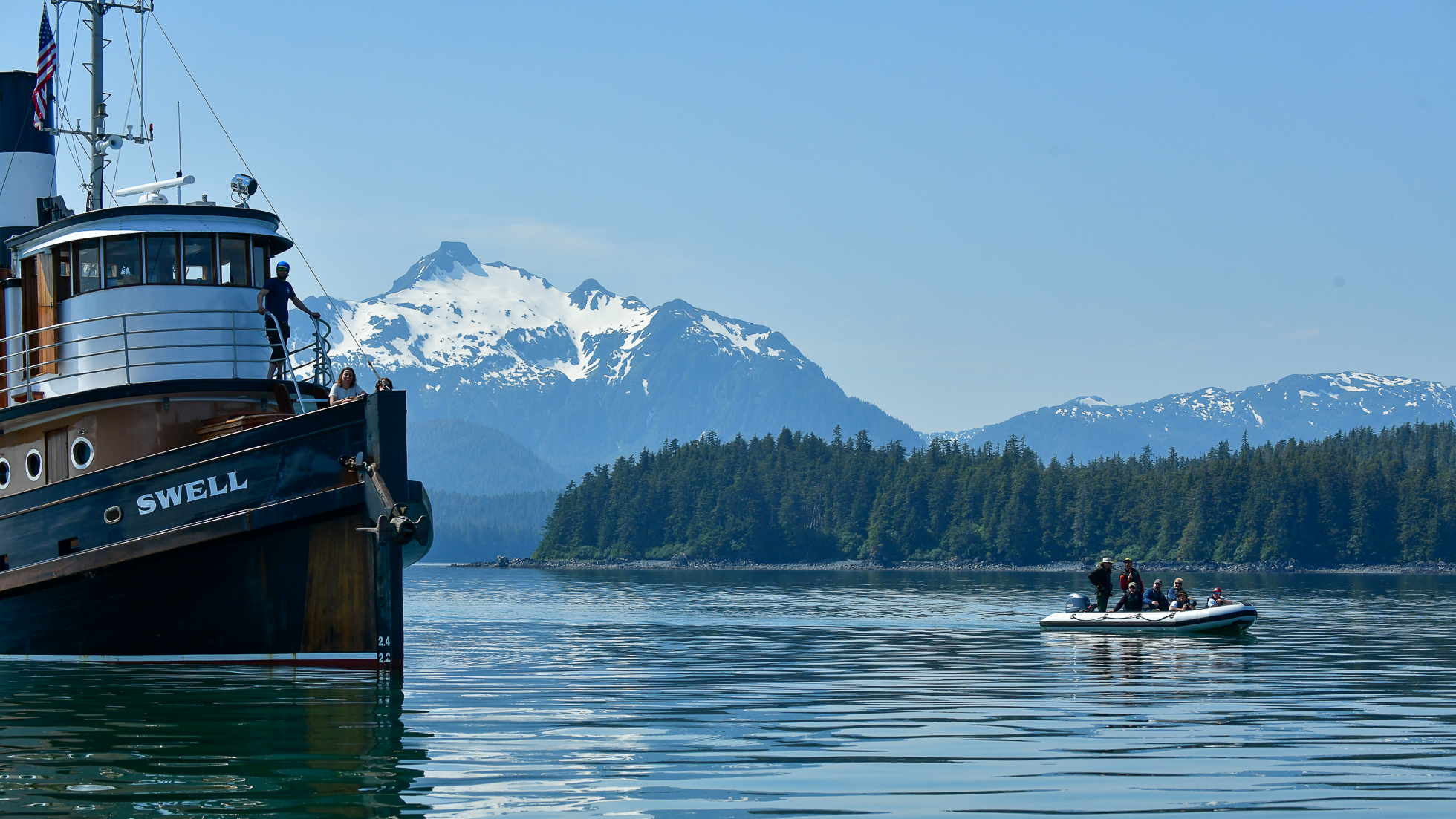 Seabirds wheel and dive in the nutrient-rich waters of Southeast Alaska, a vital feeding ground that supports salmon, eagles, and orcas alike. The Swell quietly navigates these waters, bringing guests closer to the wild without disturbing it.